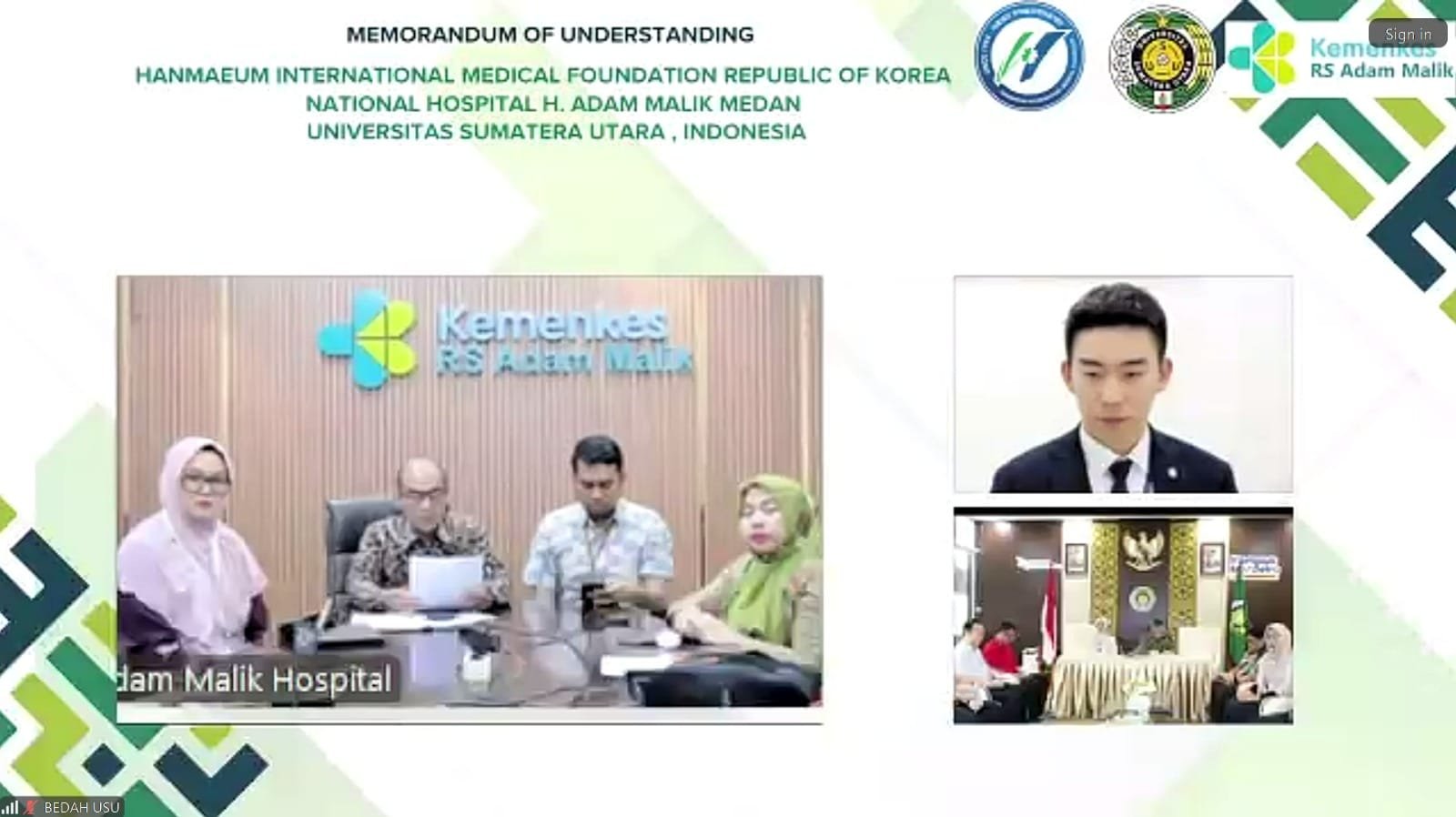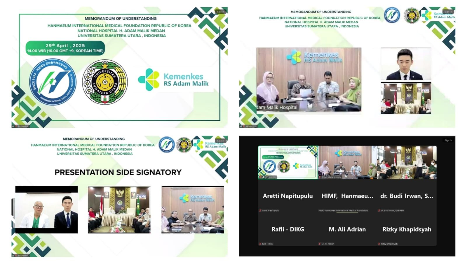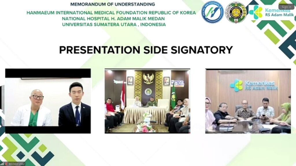Medan, 29 April 2025 – Rumah Sakit (RS) Adam Malik menjalin kerja sama dengan Korea Selatan untuk pengembangan layanan transplantasi organ. Kerja sama dengan Hanmaeum International Medical Foundation, khususnya dalam bidang transplantasi hati ini ditandai dengan seremonial penandatanganan nota kesepahaman (MoU) yang dilakukan secara daring (online) pada Selasa (29/04/2025).