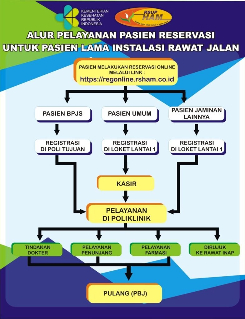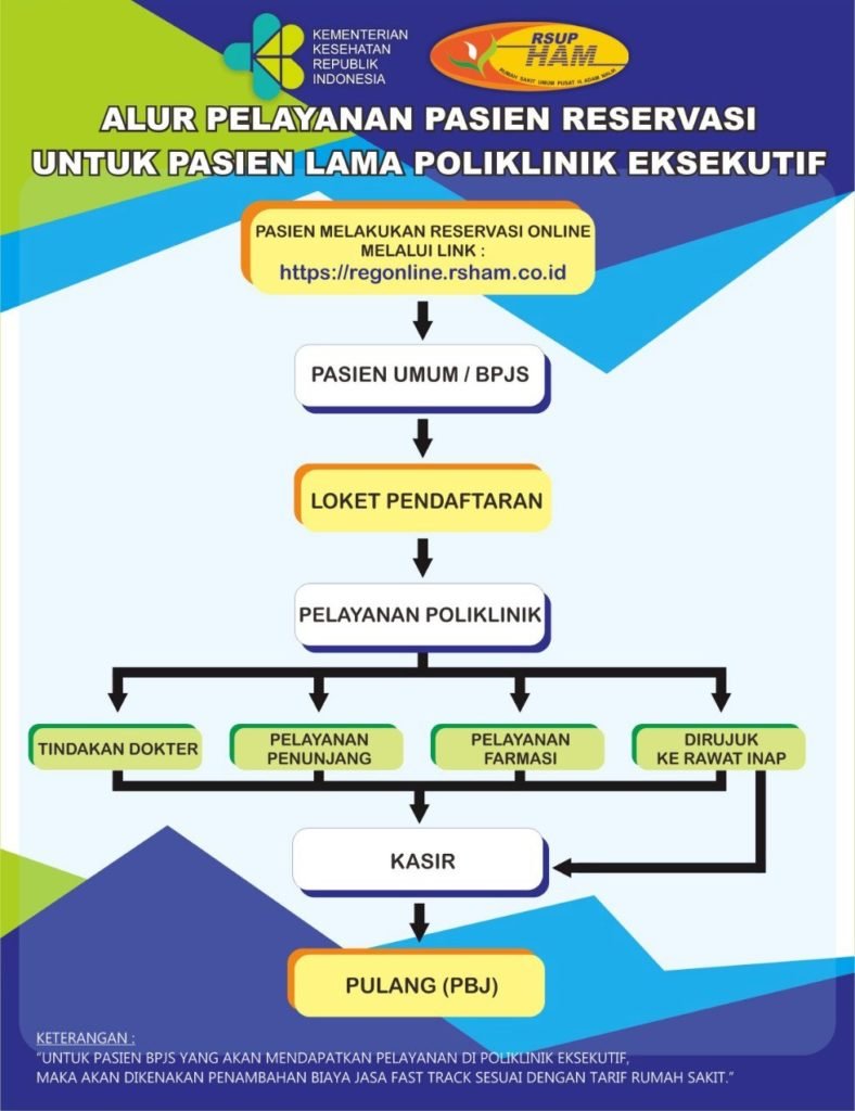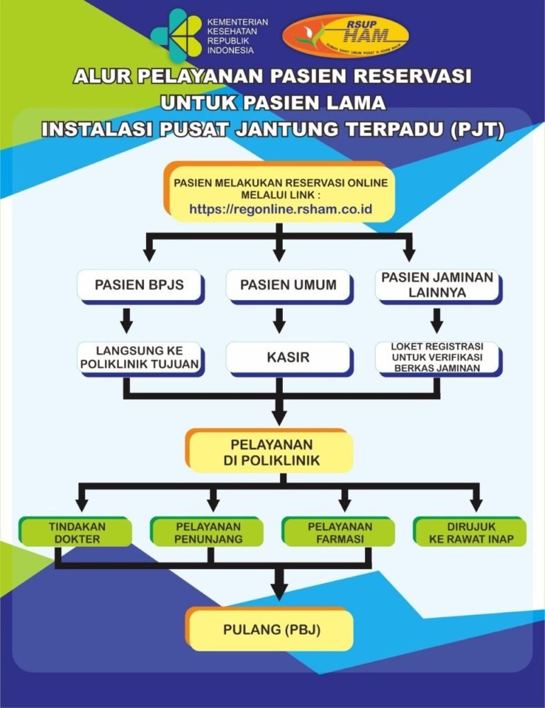 Berikut adalah informasi penting yang dapat membantu Anda mengenai Alur Pelayanan Pasien Reservasi untuk Pasien Lama di Instalasi Rawat Jalan, Poliklinik Eksekutif dan Instalasi Pusat Jantung Terpadu: