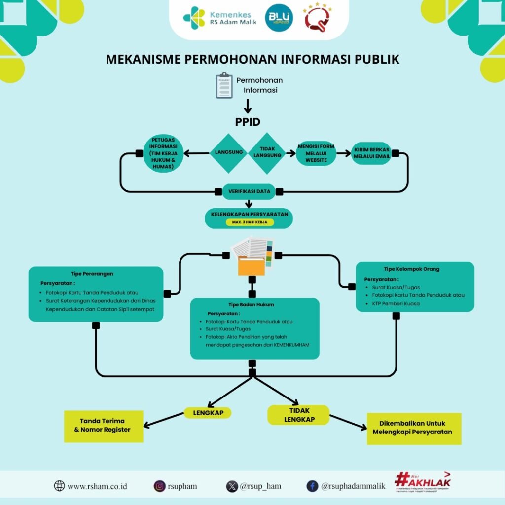 Pemohon dapat mengajukan permohonan informasi publik yang ditujukan kepada PPID Pelaksana RSUP H. Adam Malik melalui Tim Kerja Hukum dan Humas.